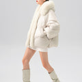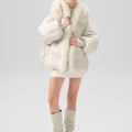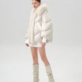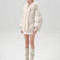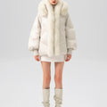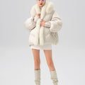 This luxurious down jacket is a perfect blend of high-end style and ultimate warmth, featuring a voluminous fox fur-lined hood and trim that add an extra touch of elegance and sophistication. Filled with 90% premium duck down, it offers exceptional insulation while remaining lightweight and comfortable. The plush fox fur detail not only elevates the overall look but also provides added warmth and a glamorous edge to the jacket. With its oversized silhouette, ribbed cuffs, and quilted design, this jacket is both a practical and stylish statement piece for the winter season.