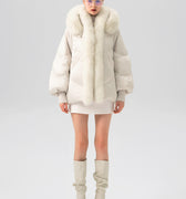 • Fox fur hood and trim along the front body