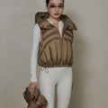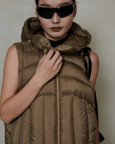 Lightweight, versatile, and built for movement. This modular down jacket features 90% premium white duck down, a durable 100% polyester shell, and detachable sleeves that let you switch from jacket to vest in seconds. The drawstring hem shapes your silhouette, while the hooded design adds comfort and protection. Finished with the NOMADAPT metal sleeve badge for a modern, elevated touch.