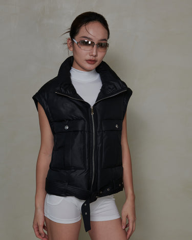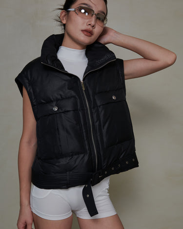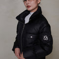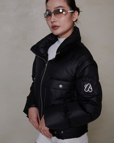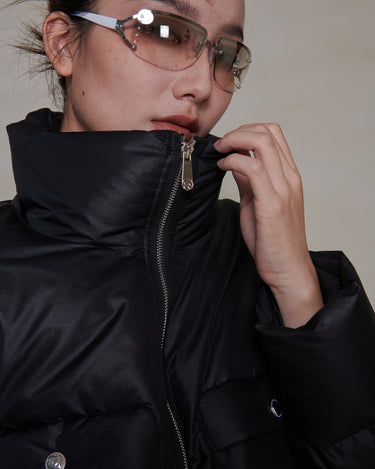 A modern essential with a sculpted edge. Crafted with 90% premium white duck down, this puffer features a diamond-weave fabric that catches light with a subtle shimmer. The detachable sleeves convert it into a vest, while the removable hem belt lets you adjust the silhouette from relaxed to structured. Finished with the NOMADAPT signature metal sleeve badge for a clean, refined touch.