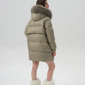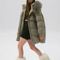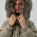 This modern down jacket combines functionality with avant-garde style, featuring a deconstructed design that highlights unique structural elements and bold lines. Filled with 90% premium duck down, it ensures lightweight warmth without compromising on comfort. The jacket's oversized silhouette is complemented by intricate detailing, such as the exaggerated pockets and high collar, offering both practicality and visual interest. The luxurious fur-trimmed hood adds a touch of sophistication, while the deconstructed aesthetic makes this jacket a standout piece for anyone looking to elevate their winter wardrobe.