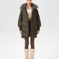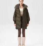 Crafted with 90% premium duck down, this down jacket is the perfect blend of warmth, style, and functionality. Its oversized, relaxed fit offers maximum comfort, while the luxurious fur-trimmed collar adds a touch of sophistication. The high-loft insulation ensures you stay warm in even the harshest conditions, without sacrificing breathability. Designed with meticulous attention to detail, this jacket combines lightweight durability with timeless elegance, making it the perfect companion for both urban and outdoor winter adventures.