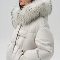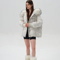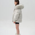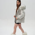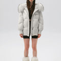 This down jacket combines warmth and luxury with its 90% premium duck down fill, offering exceptional insulation in the coldest conditions. The hood is trimmed with genuine raccoon fur, adding a touch of opulence and natural texture. The quilted design ensures both durability and a sleek, stylish silhouette, while functional details like ribbed cuffs and bottom drawstring enhance practicality. A drawstring waist allows for a tailored fit, making this jacket a perfect blend of high-performance functionality and refined elegance for winter wear.