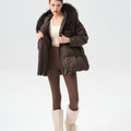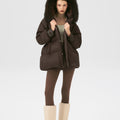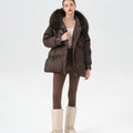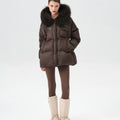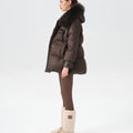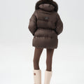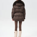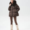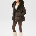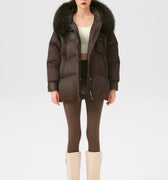 Engineered for unparalleled warmth and sophistication, this down jacket is crafted with 90% duck down insulation, ensuring ultimate protection in extreme cold. The generous raccoon fur-trimmed hood not only adds a luxurious touch but also offers superior warmth and coverage. Leather splicing and reinforced leather cuffs elevate its durability while enhancing its refined, rugged aesthetic. With every detail meticulously designed, this jacket embodies the perfect balance of function and style, built to withstand the harshest conditions without compromising on elegance.