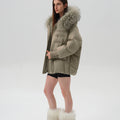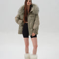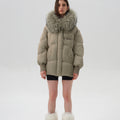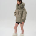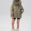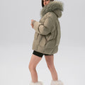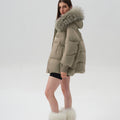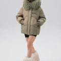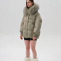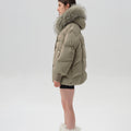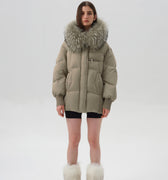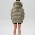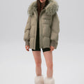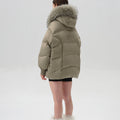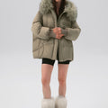 This down jacket combines warmth and luxury with its 90% premium duck down fill, offering exceptional insulation in the coldest conditions. The hood is trimmed with genuine raccoon fur, adding a touch of opulence and natural texture. The quilted design ensures both durability and a sleek, stylish silhouette, while functional details like ribbed cuffs and bottom drawstring enhance practicality. A drawstring waist allows for a tailored fit, making this jacket a perfect blend of high-performance functionality and refined elegance for winter wear.