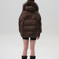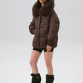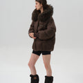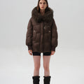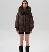 This down jacket combines warmth and luxury with its 90% premium duck down fill, offering exceptional insulation in the coldest conditions. The hood is trimmed with genuine raccoon fur, adding a touch of opulence and natural texture. The quilted design ensures both durability and a sleek, stylish silhouette, while functional details like ribbed cuffs and bottom drawstring enhance practicality. A drawstring waist allows for a tailored fit, making this jacket a perfect blend of high-performance functionality and refined elegance for winter wear.